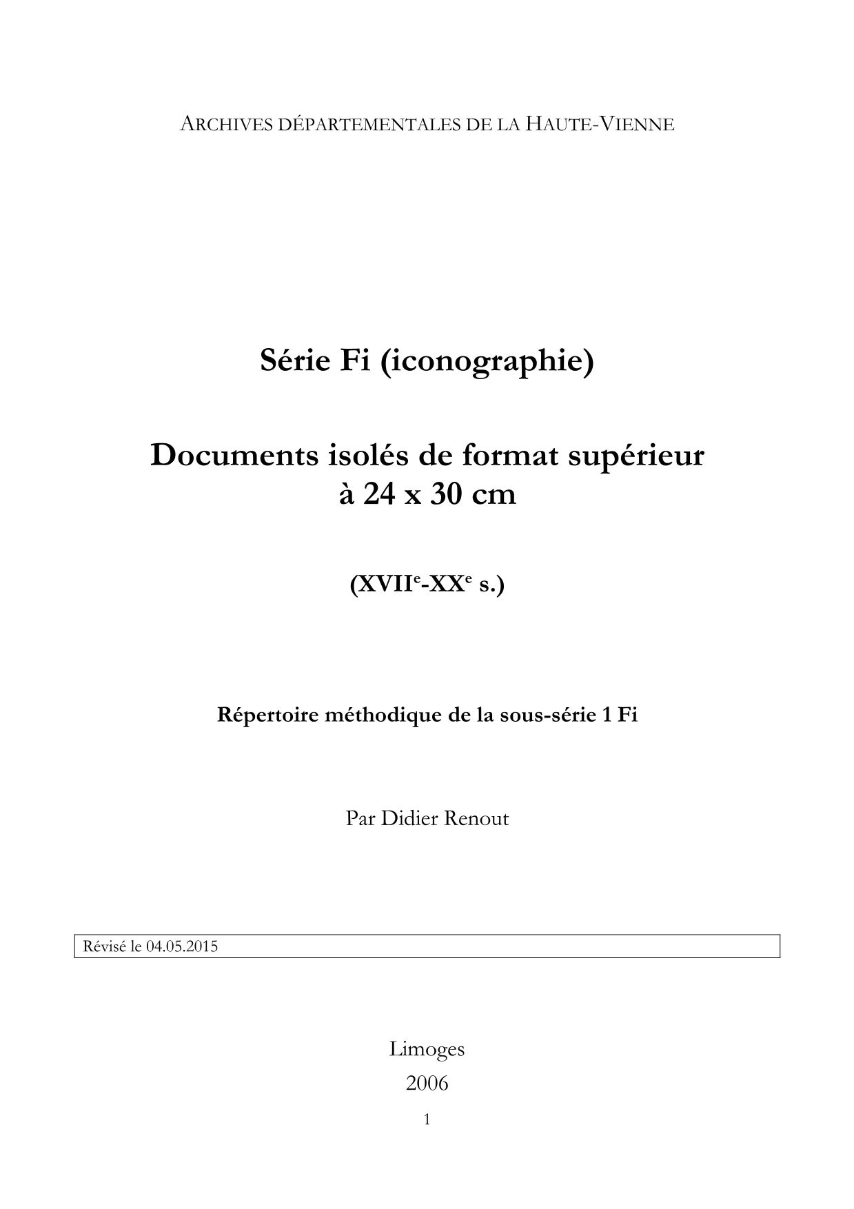 1 Fi. Répertoire méthodique, par D. Renout, 2006, 155 p.