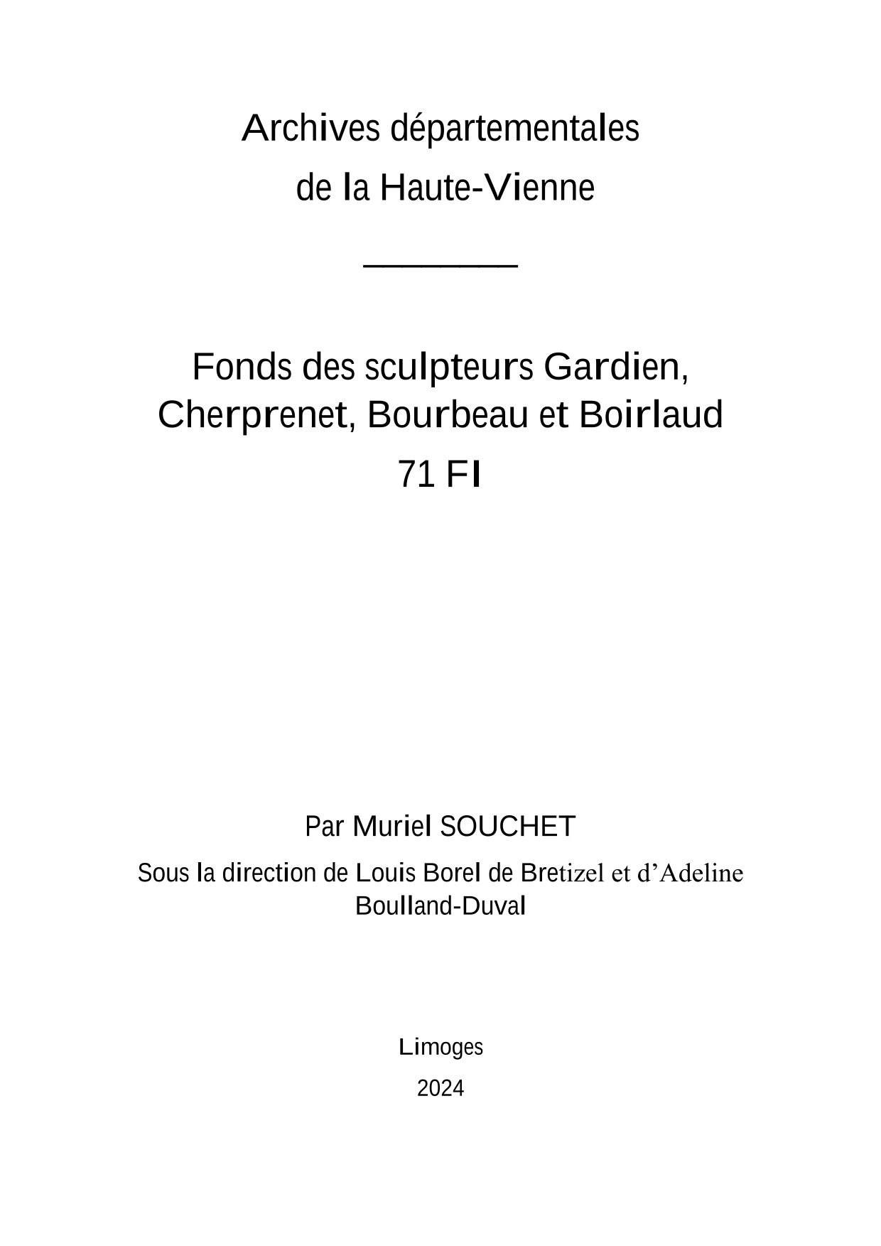 Fonds des sculpteurs Gardien, Cherprenet, Bourbeau et Boirlaud (71 FI). Répertoire numérique détaillé, par Muriel Souchet, 2024, 34 p. dact.