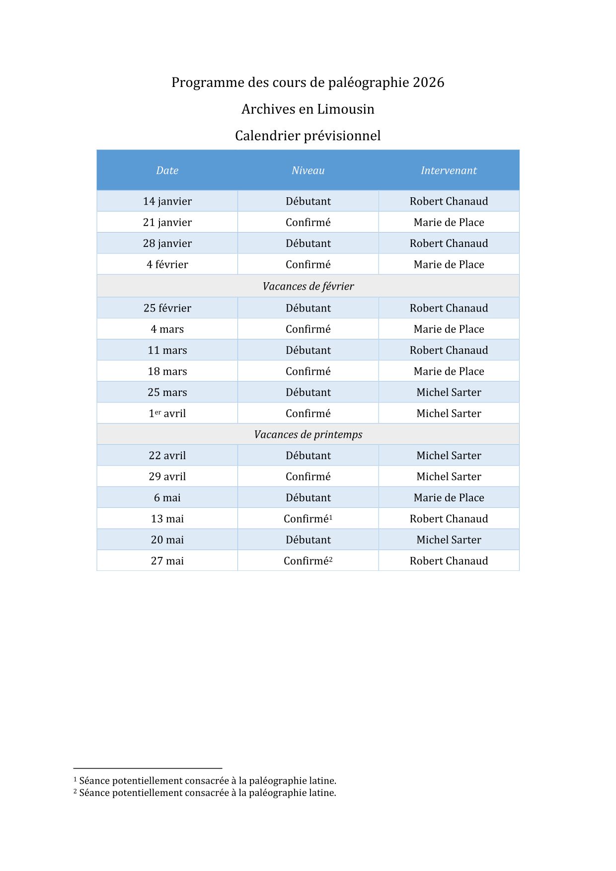 Cours de paléographie 2026Archives départementales de la Haute-Vienne 1 allée Alfred-Leroux 87000 Limoges