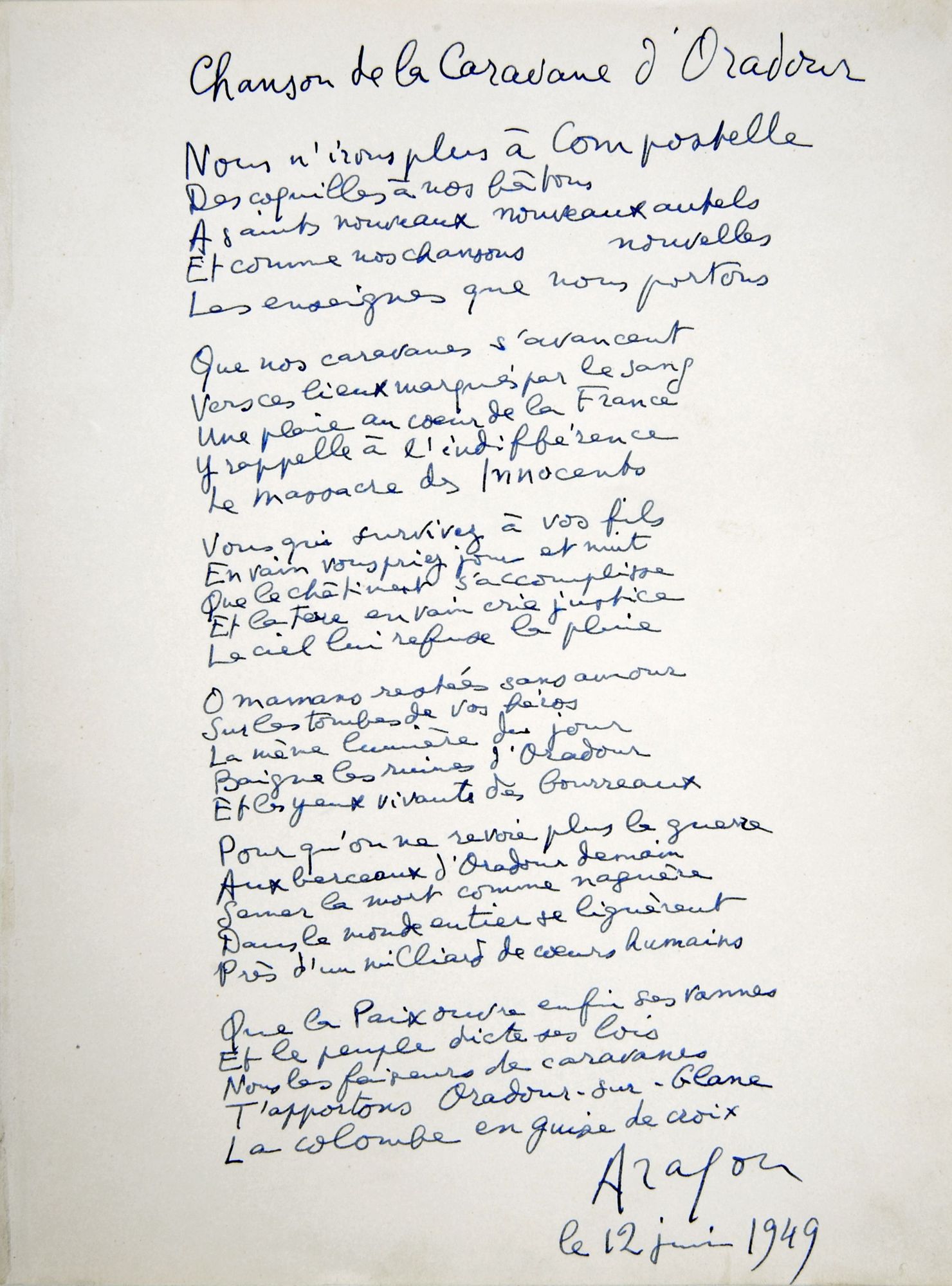 La mairie et la bibliothèque d’Oradour-sur-Glane organisent un évènement exceptionnel avec la possibilité dans la même soirée de revoir un documentaire sur le photographe Willy Ronis, d’assister à une conférence sur Louis Aragon et d’assister à la présentation du trésor d’archives qu’est le livre d’or d’Oradour-sur-Glane.